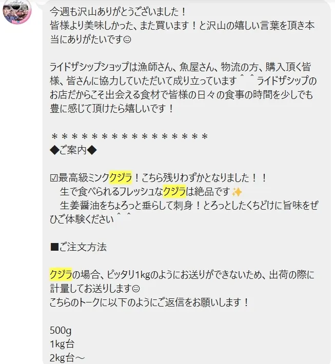 このLINE配信、実は私がとても尊敬している漁師さんからアドバイスを頂きはじめたもの🤭