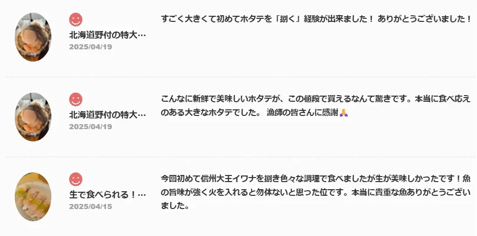 普段なかなか手に入らない魚介が水揚げ直後や市場に並んでいるタイミングで情報が回ってくるので、美味しさそのままにお届けできるスピード感は産直だからこそです!