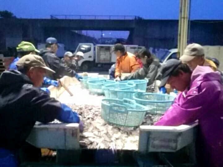 港へ戻ると漁師さんが手作業で魚を選別し、奥さんたちが箱詰めの準備をする。