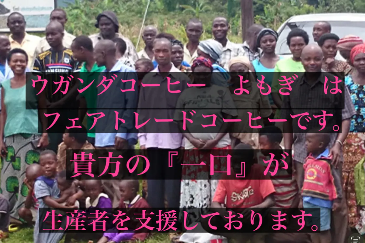 フェアトレードコーヒー ウガンダ産 よもぎ を 1人でも多くの方に知って頂き ウガンダ共和国の生産者の支援につなげたいと思っています。
