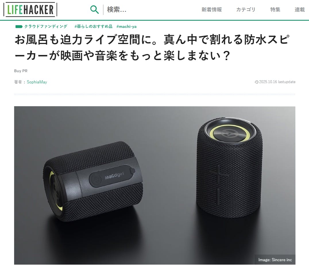 • 「MaGdget Dual Speaker」のクラウドファンディングにご支援いただきました皆様ならびに、このページにご興味を持たれている皆様、ご覧いただき、誠にありがとうございます。本プロダクトは使える、役立つ、仕事ハック!「lifehacker」のサイトにて掲載いただきました。レビューを通じて、製品の魅力をよりいっそうお伝えできれば幸いです。ぜひ、ご覧ください!ーーーーーーーーーーーーーーーーーーーーーーーーーーーーーーお風呂も迫力ライブ空間に。真ん中で割れる防水スピーカーが映画や音楽をもっと楽しまない?https://www.lifehacker.jp/article/machi-ya-magdgetdualspeaker-start-872333/ もっと見る