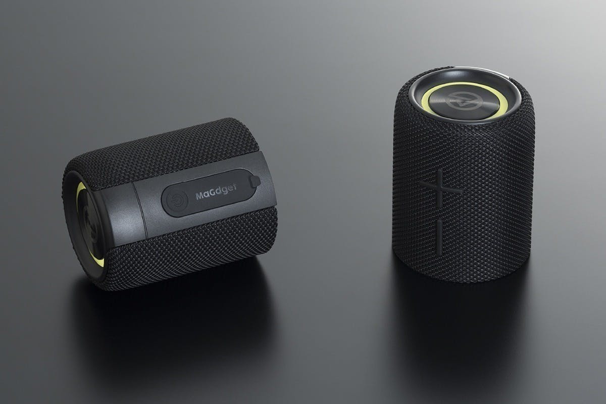 1台のスピーカーをパカッと2台に分離できるBluetoothスピーカー。分離しても音は繋がったまま。それぞれの底面に磁石が内蔵されているため、磁力がはたらく場所へ自由に設置可能。高音質のサウンドと20W出力で臨場感と迫力のある音を再現。 その全てを搭載したのが「マジェット デュアルスピーカー」です。