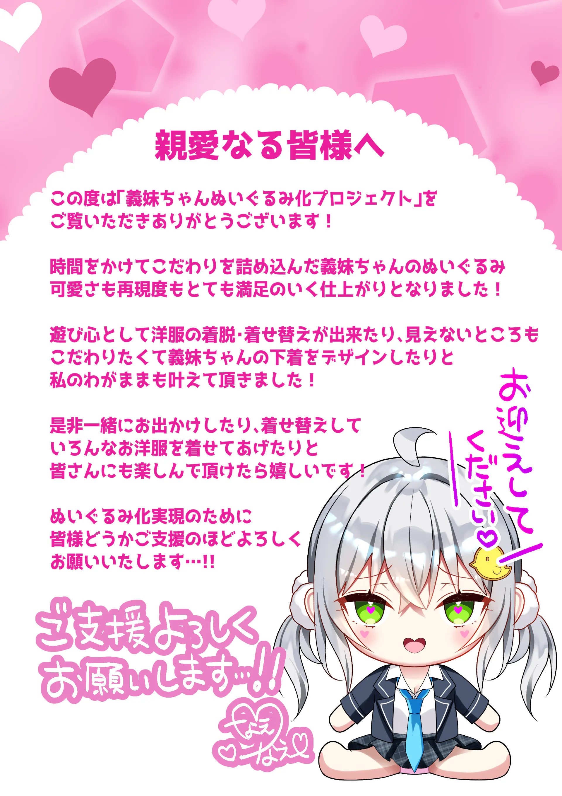 イラストレーターなえなえが描く『義妹ちゃん』がぬいぐるみ化に挑戦します!