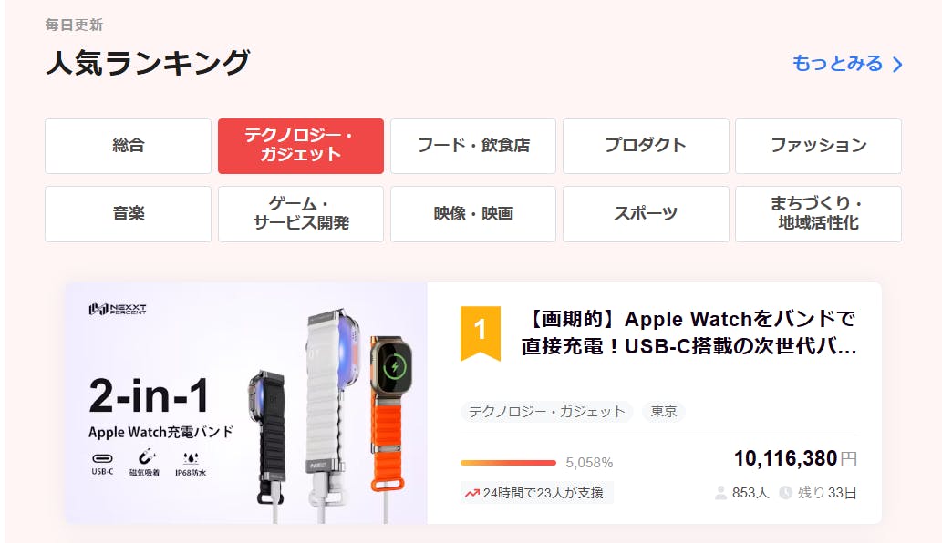 皆様の熱いご支援のおかげで、本プロジェクト公開からわずか18日間で目標金額の5000%を超え、1,000万円を突破いたしました!CAMPFIREのテクノロジー・ガジェットカテゴリランキングで1位という嬉しい結果となりました!