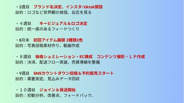 販売までのロードマップ