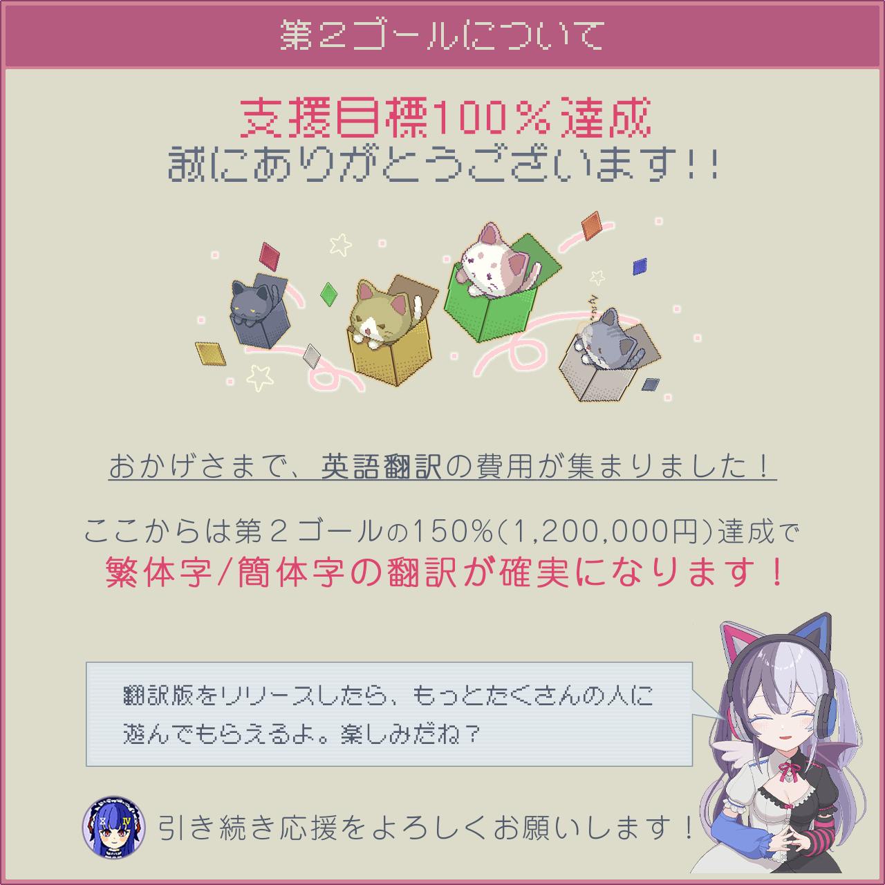 本プロジェクトは「All In型」を採用しています。目標金額の達成に関わらず、必ず1つ以上の外国語に対応した製品版を公開することをお約束します。