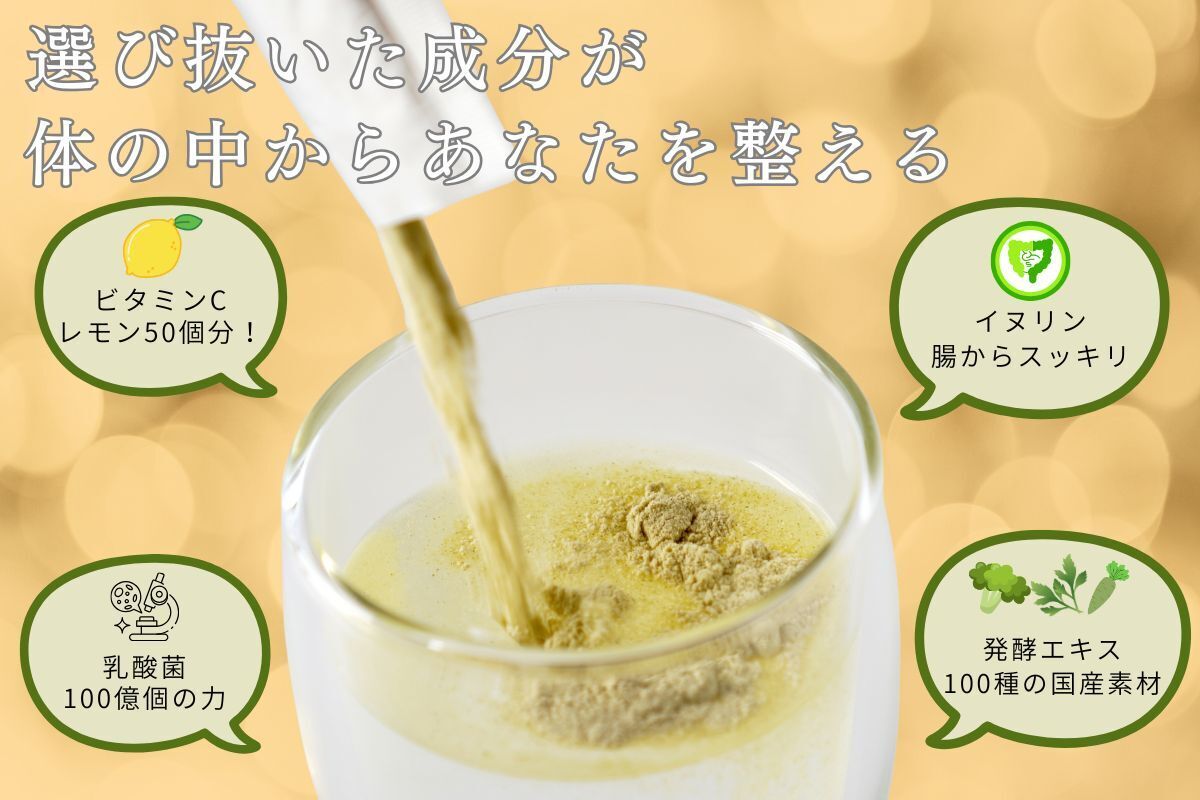 • ・100種類以上の国産野菜・果実の発酵エキス配合