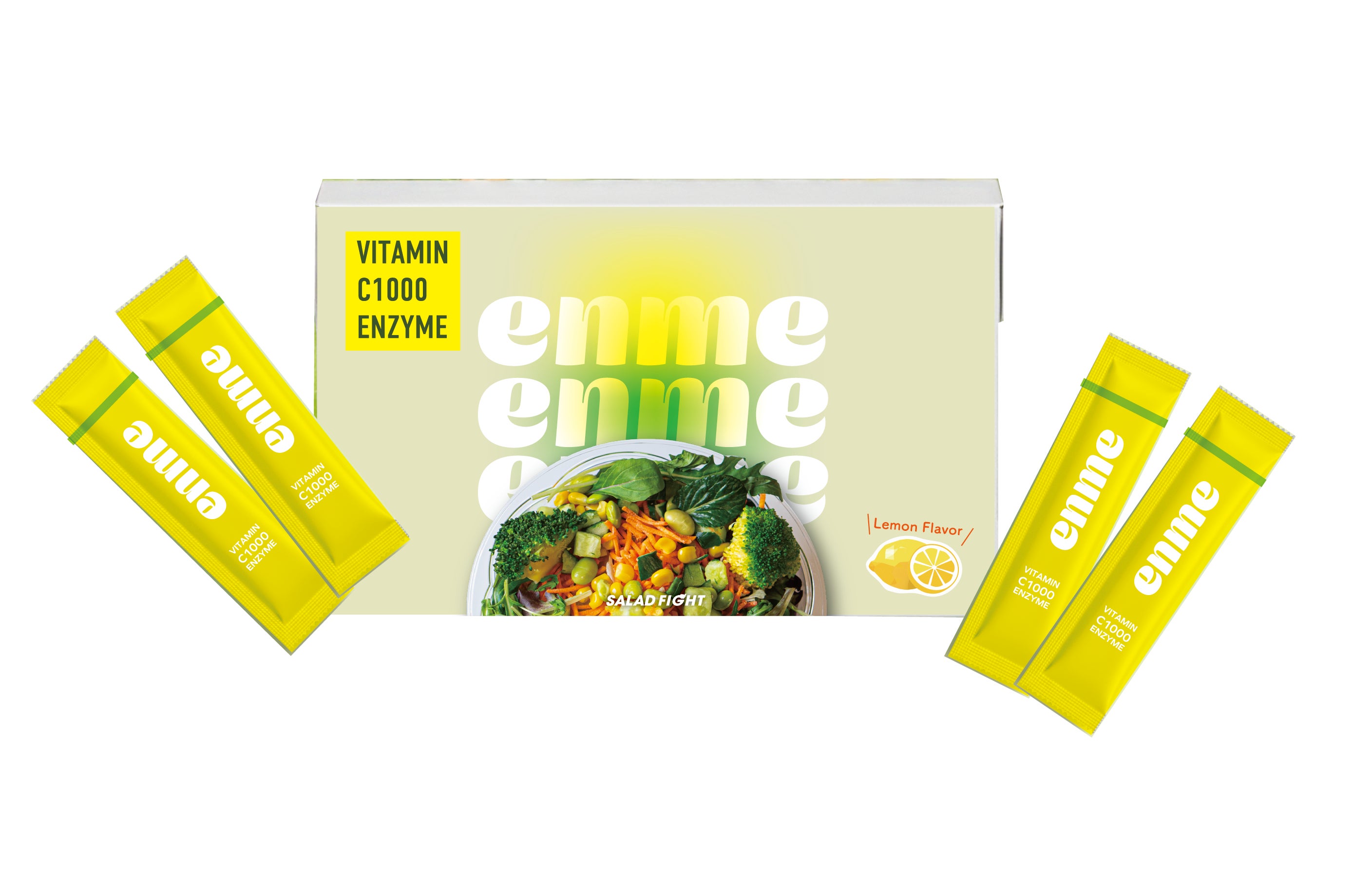 大阪・中之島のサラダ専門店「SALAD FIGHT」でご利用いただける、1か月お試し会員パス(サラダ8回分)と、酵素ドリンク「enme」1箱(12食分)のセットプランです。