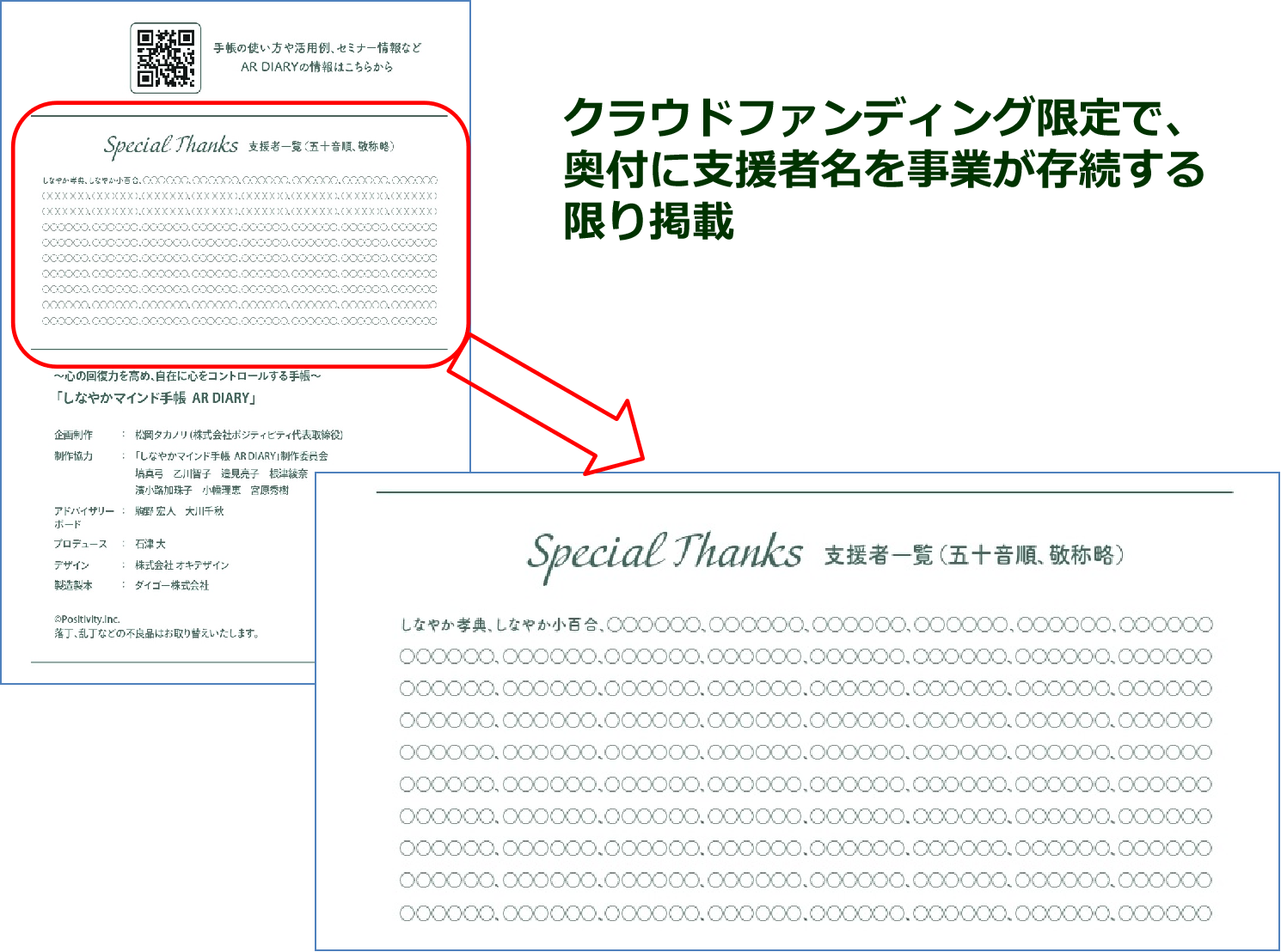 AR DIARYの最終ページ「奥付け欄」に
