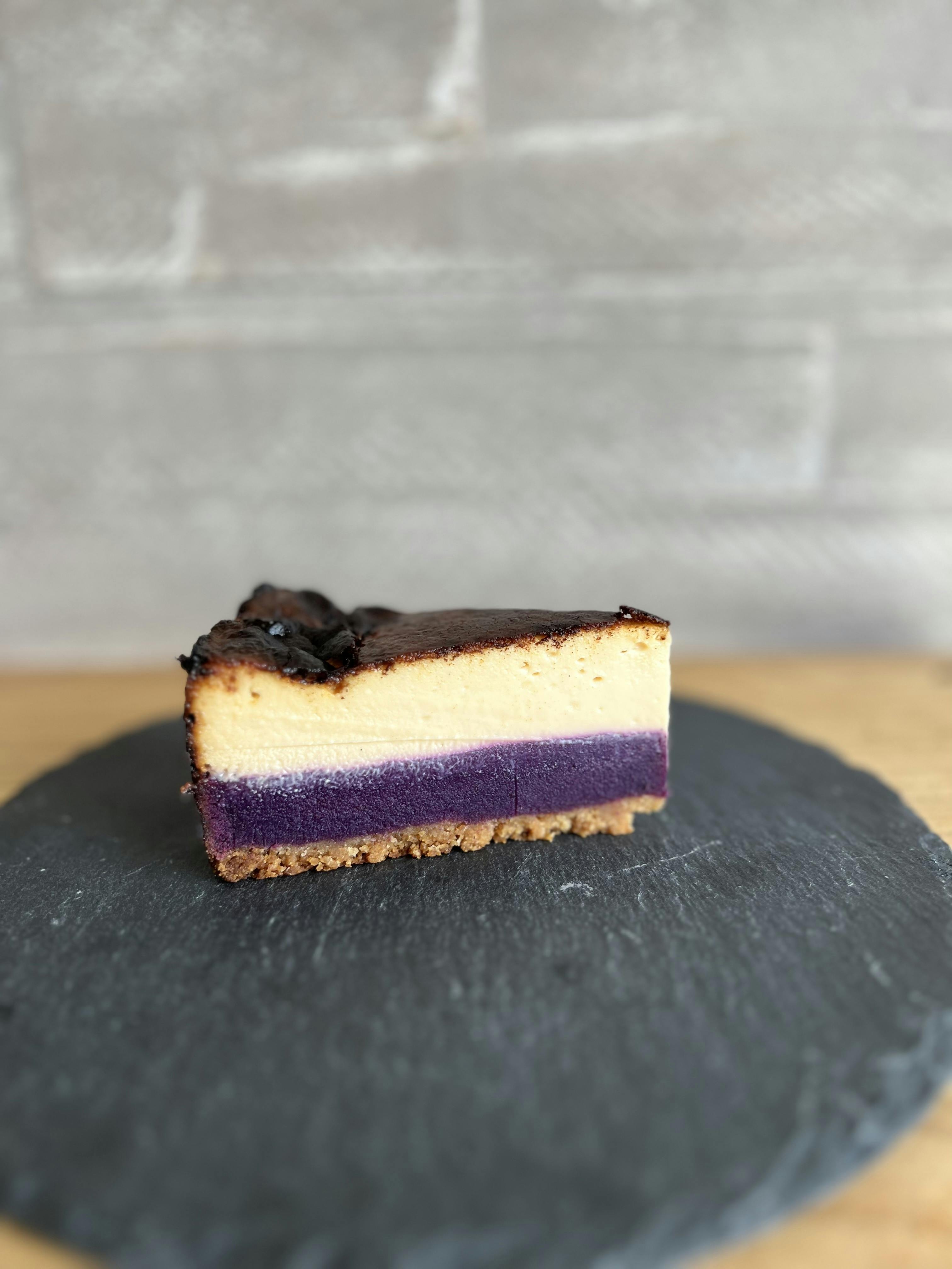 ひと口食べれば、紅芋本来の優しい甘さが、バスクチーズの濃厚なコクと見事に溶け合い、沖縄ならではの豊かな味わいが口いっぱいに広がります。
