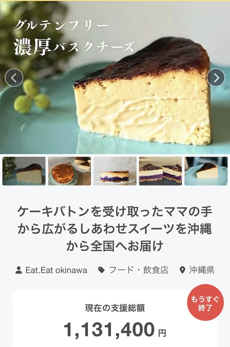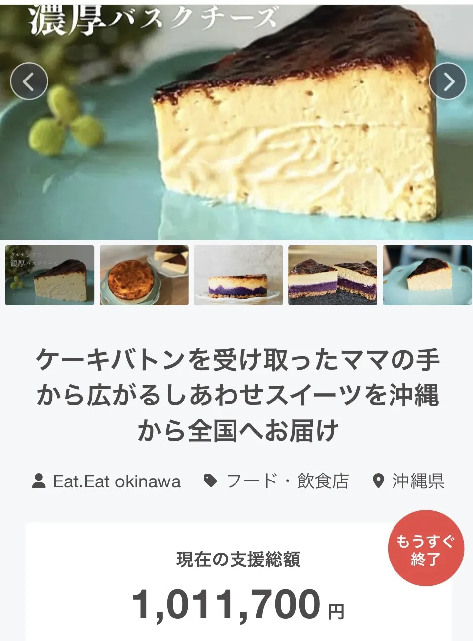 2025/09/29 00:41[クラファン最終日のご報告]こんばんは!8月27日からスタートしたクラウドファンディングも、本日いよいよ最終日を迎えました。ここまで温かく応援、ご支援くださった皆さま、本当にありがとうございます。皆さまのお力添えのおかげで最後まで走り抜けることができました。一つひとつのメッセージ、ご支援の度にすごく感動で嬉しくて胸が熱くなり、改めて「支えていただいている」ことを実感する毎日でした。ありがとうございます。挑戦は本日23:59まで続いてます最後の瞬間まで、この想いをしっかりと届けてまいります、どうぞ見守っていただけたら嬉しいです!この挑戦はゴールではなく新たなスタート。いただいたご支援をもとに、子育てママが楽しくやり甲斐のある職場、グルテンフリースイーツを通して笑顔を広げていきます。今後とも宜しくお願い致します。キューブ型のチーズケーキ試作⤵︎ もっと見る