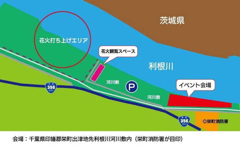 会場 利根川河川敷特設会場(栄町消防署前:千葉県印旛郡栄町)
