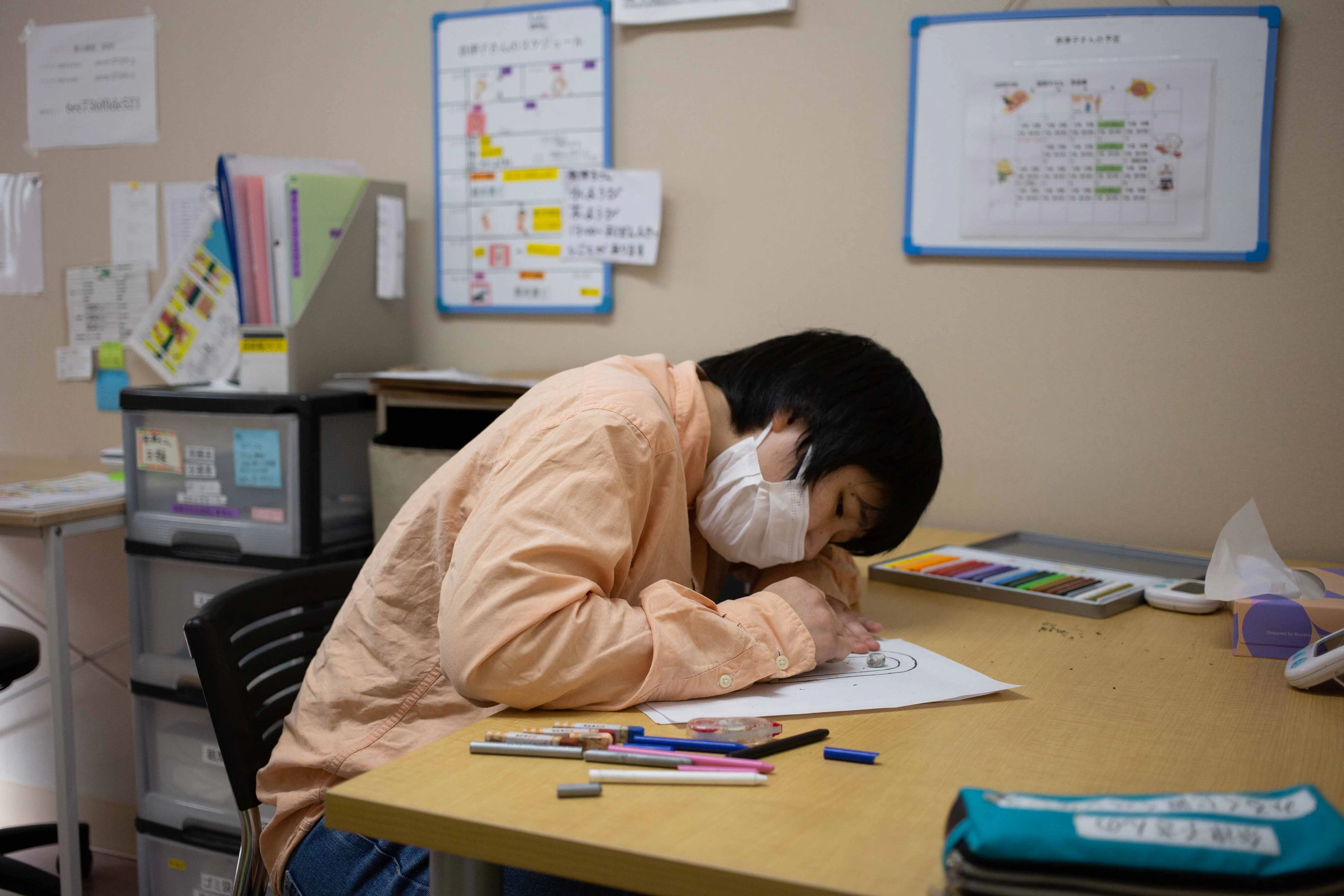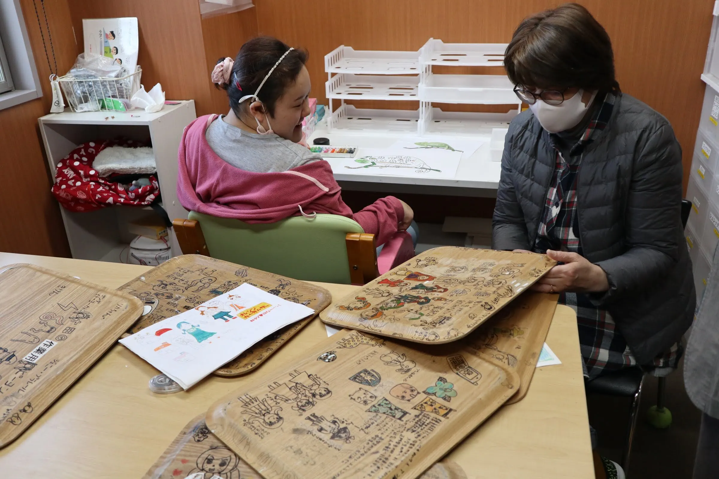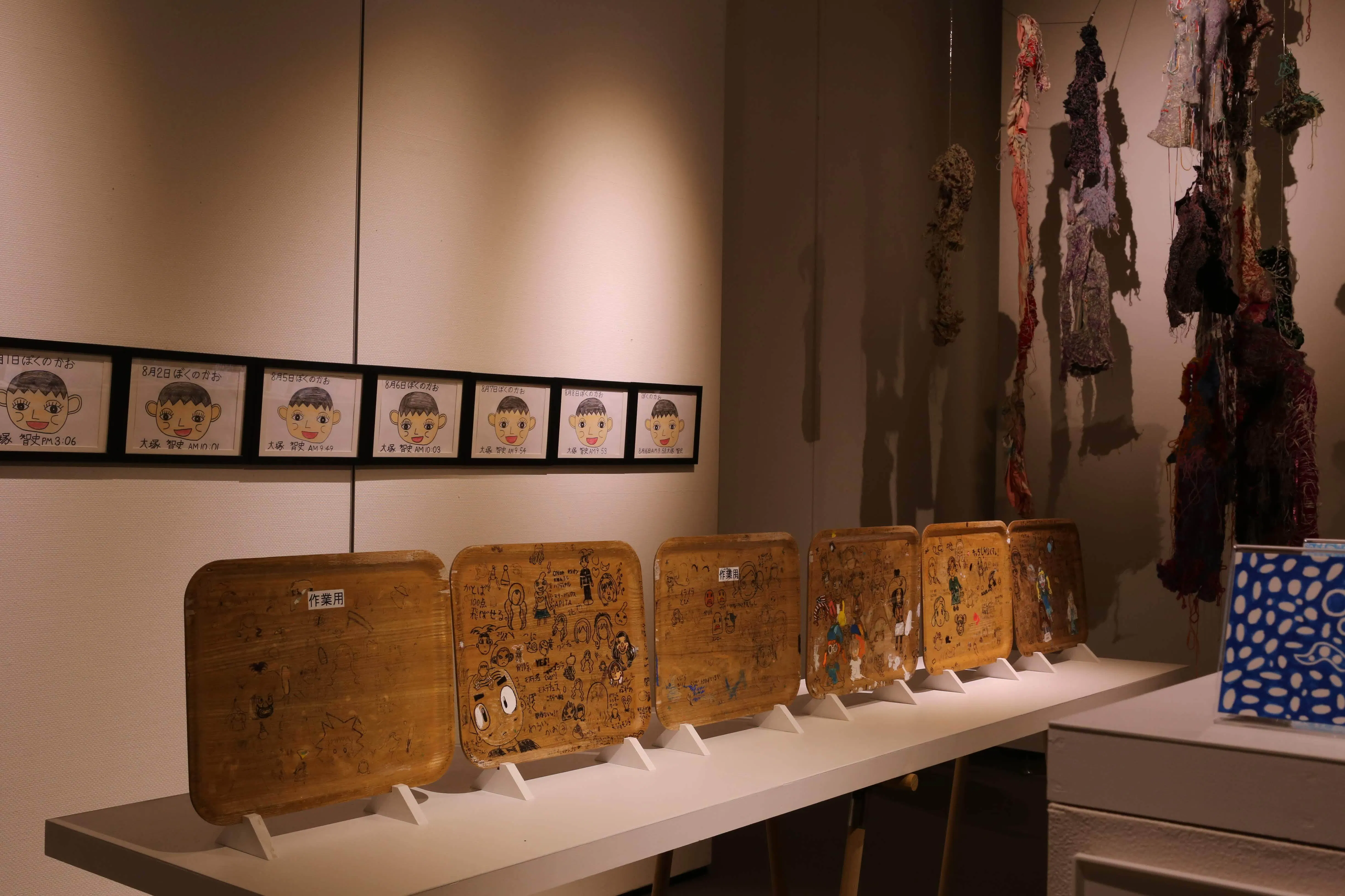 いつの間にか作業用のお盆に描かれる大橋さんの作品 上越アール・ブリュット公募展 2019年度