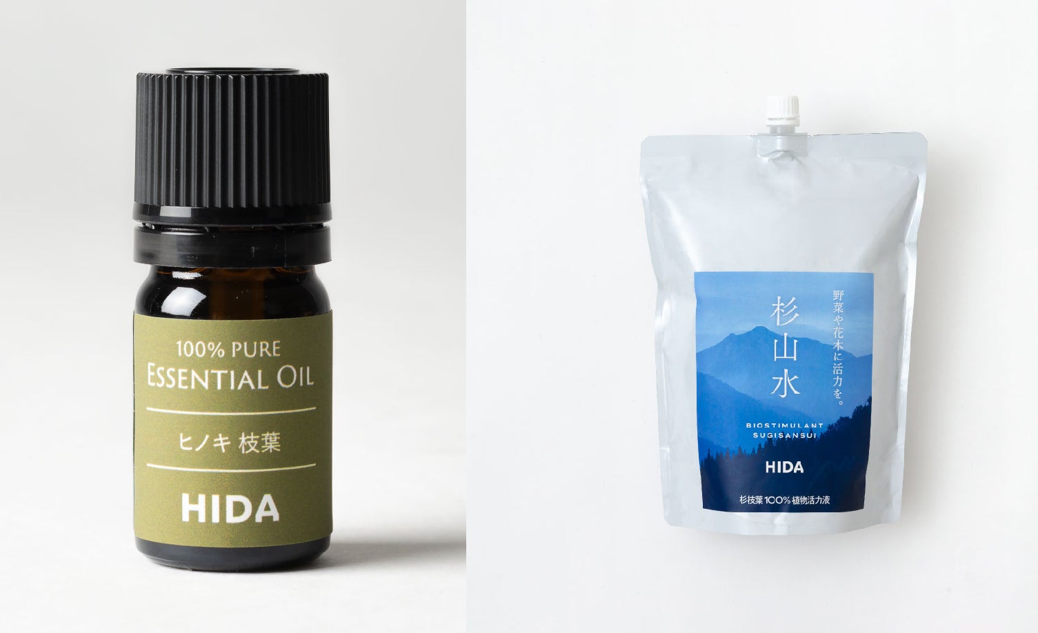 飛騨産業㈱ご提供の『スギ枝葉のエッセンシャルオイル』、『杉山水』をお届けします。