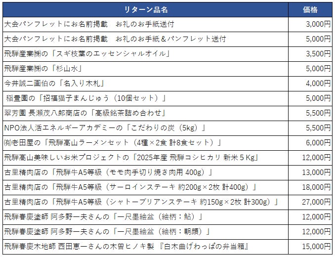 ◆リターン品一覧