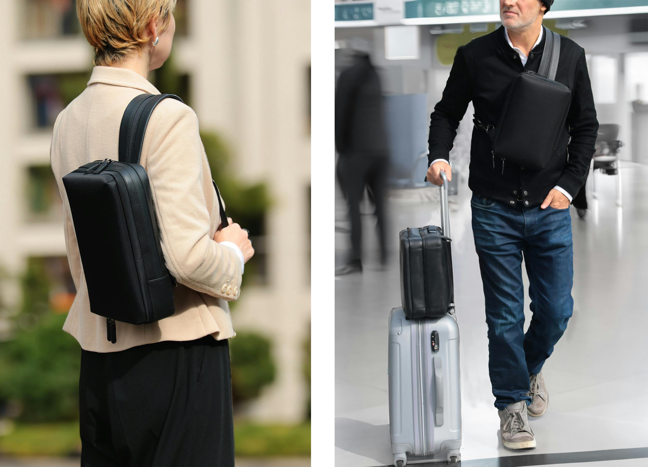 スーツから休日のスタイルまで使える、使うだけで”収納上手”になれるボディバッグ。