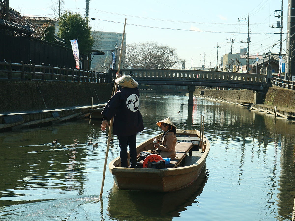 美しい蔵の街を着物で体験する権利もリターンに!街中の遊覧船にも乗船できます