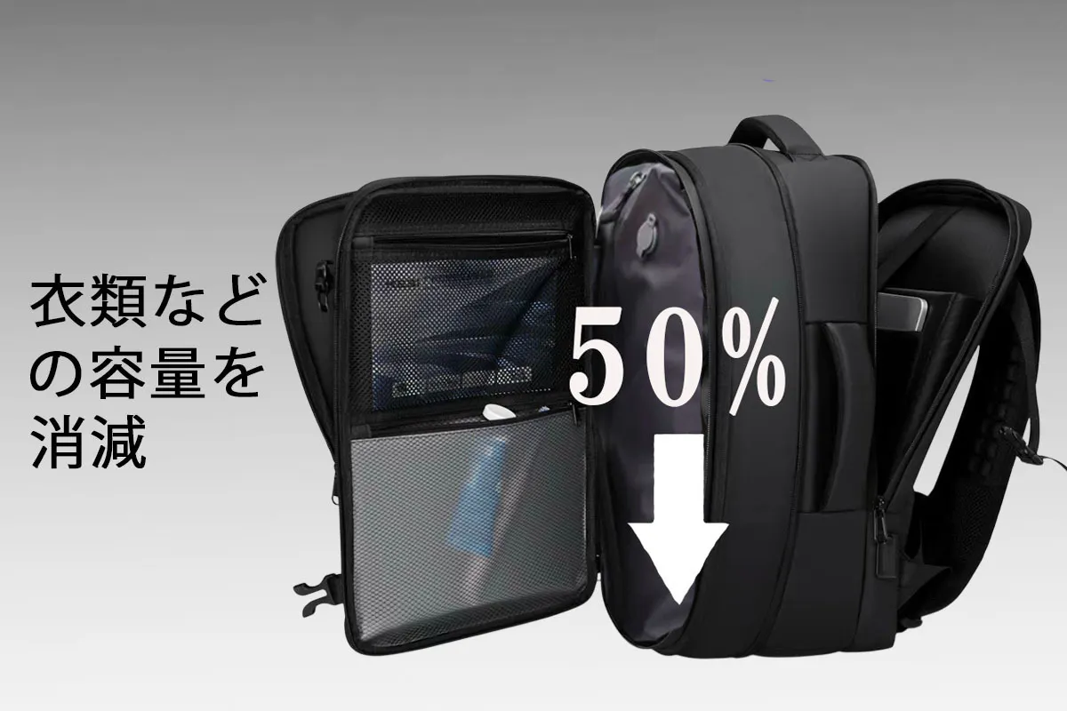 ポンプで空気を抜くだけで、かさばる荷物もコンパクト
