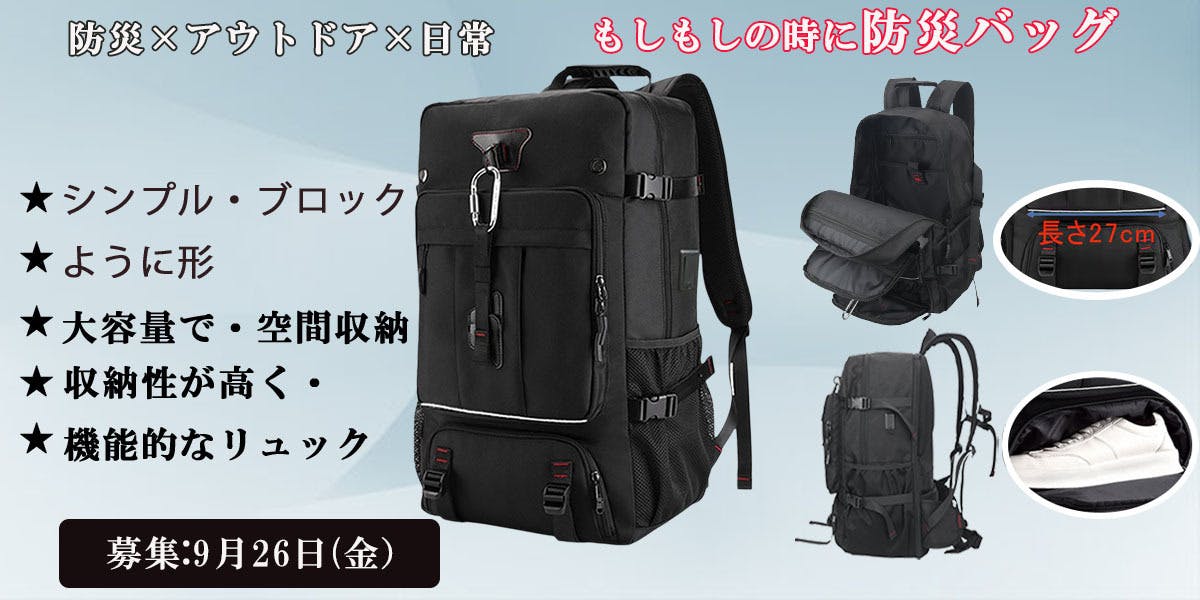 私たちがお届けしたいのは、「日常で本当に使える防災バッグ」です。毎日持ち歩ける機能性とデザイン、そして、もしもの時には大切な命を守る備えにもなる、そんな“一石二鳥”のリュックで、日常と防災の距離を縮めたいと考えています。
