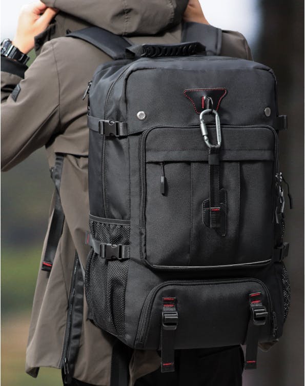 拡張機能により、横幅は8cmを拡張し、無理のない収納を実現しました。荷物が増えても安心!拡張機能で容量が約25%アップ。アウトドアや旅行、防災備蓄にも最適です。