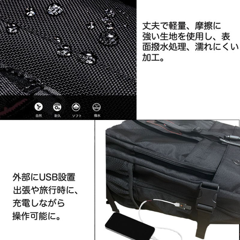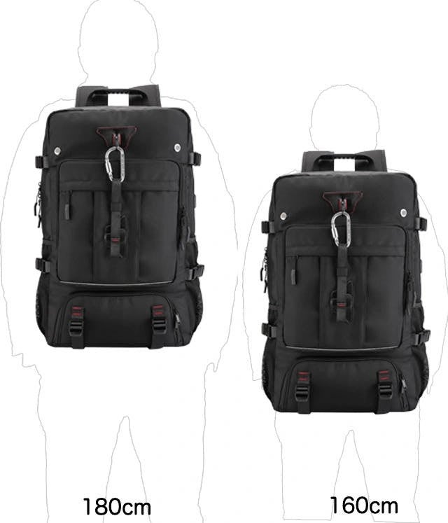 固定ベルトを採用し、キャリーオンバッグとしてスーツケースに固定でき、肩の疲れを分担できる快適なサポート、出張や旅行時などで便利に活用いただけます。