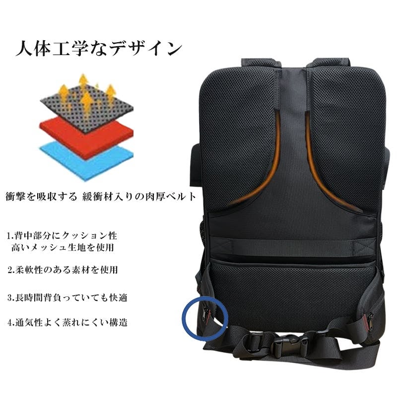 長時間の移動でも肩や背中への負担を軽減されます。
