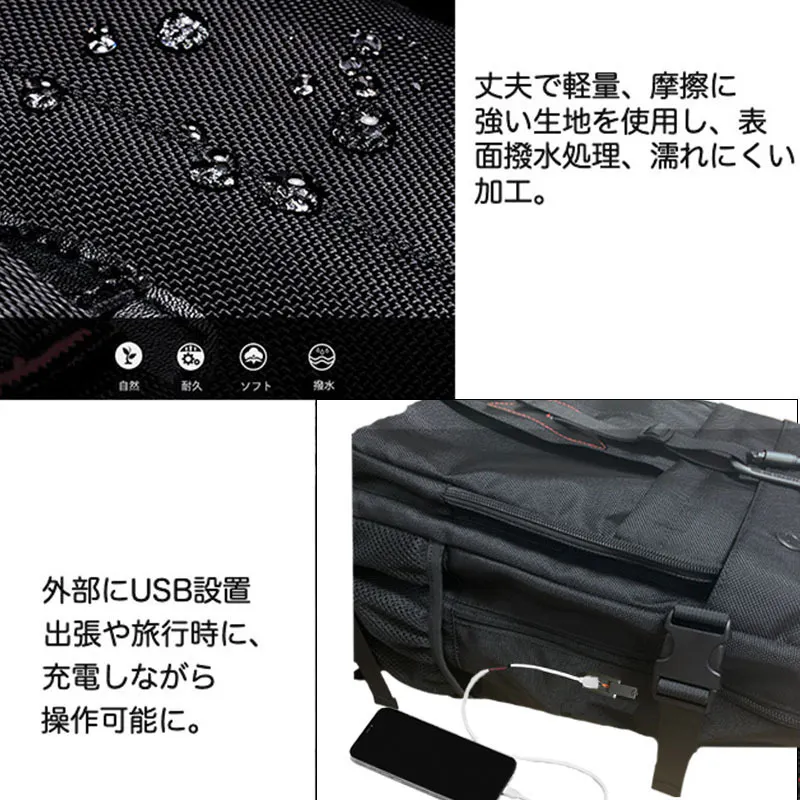 固定ベルトを採用し、キャリーオンバッグとしてスーツケースに固定でき、肩の疲れを分担できる快適なサポート、出張や旅行時などで便利に活用いただけます。