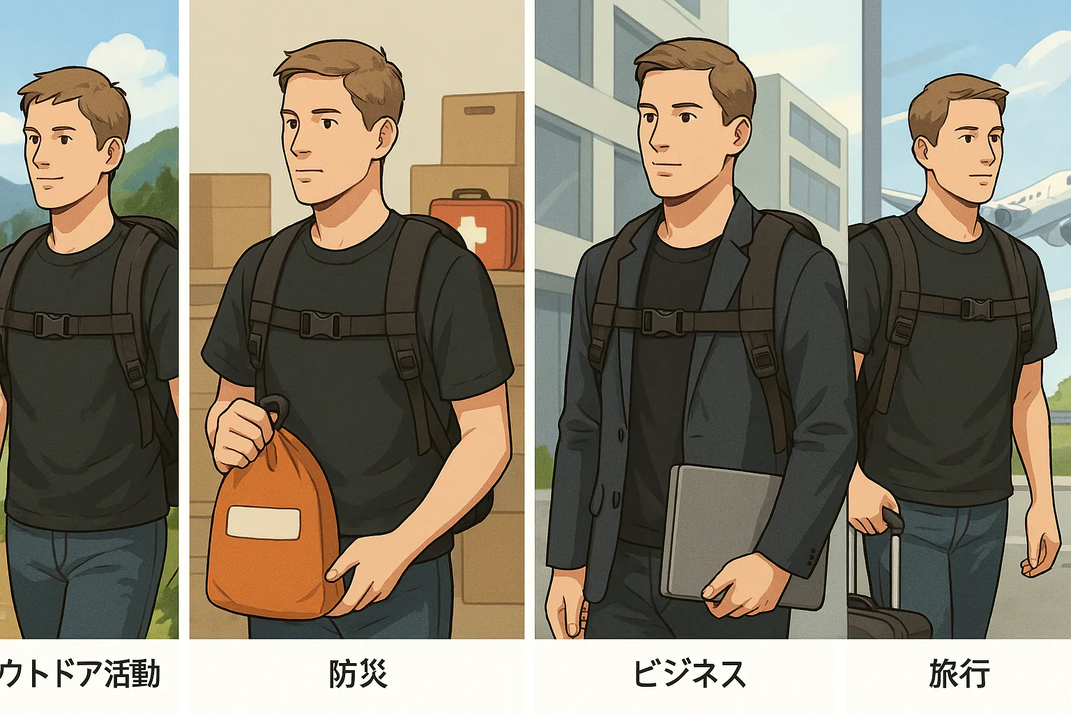 私たちのリュックは、これまで「防災バッグ」として、キャンプや登山、旅行や出張用としても多くの方に選ばれてきました。