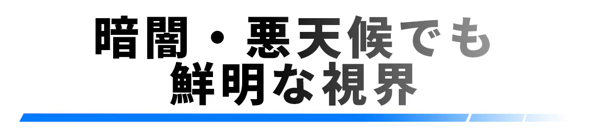 夜だけではなく、濃霧や豪雨、豪雪など悪天候の日でも、常に前方の状況をクリアに映し出します。