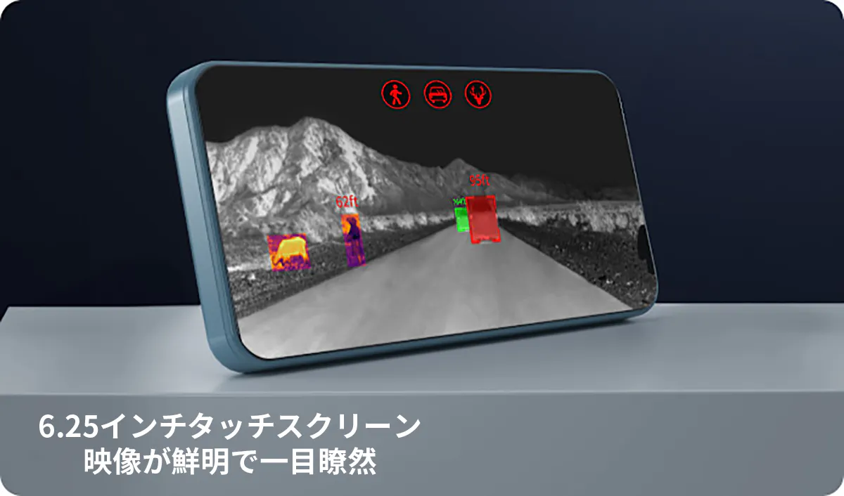 従来のドライブレコーダーでは捉えきれない真夜中の世界。「InsightDrive X1」のサーマルイメージング技術を採用した広視野角カメラ(※)により、極限的な低照度環境でも物体を鮮明に認識。外部光源を必要とせず、動物や歩行者、車両を確実に捉えてスクリーンに表示し、安心の運転体験を実現。