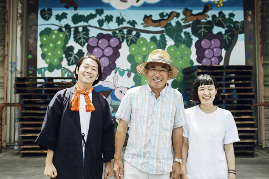(写真左:編集者・徳谷柿次郎、写真中央:ぶどう農家・上野善久さん、写真右:ライター・ナカノヒトミ)