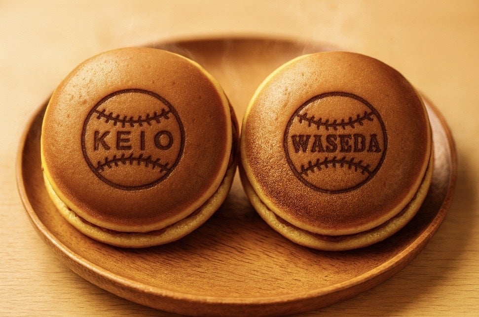 早慶戦といえば、球場に響く応援歌や、熱い声援、そして早慶の学生たちが互いにエールを送り合ったあの瞬間が思い浮かびます。その感動を、味覚でも感じていただくために選んだのが、戦前より日本人に愛され、長く親しまれている「どら焼き」です。