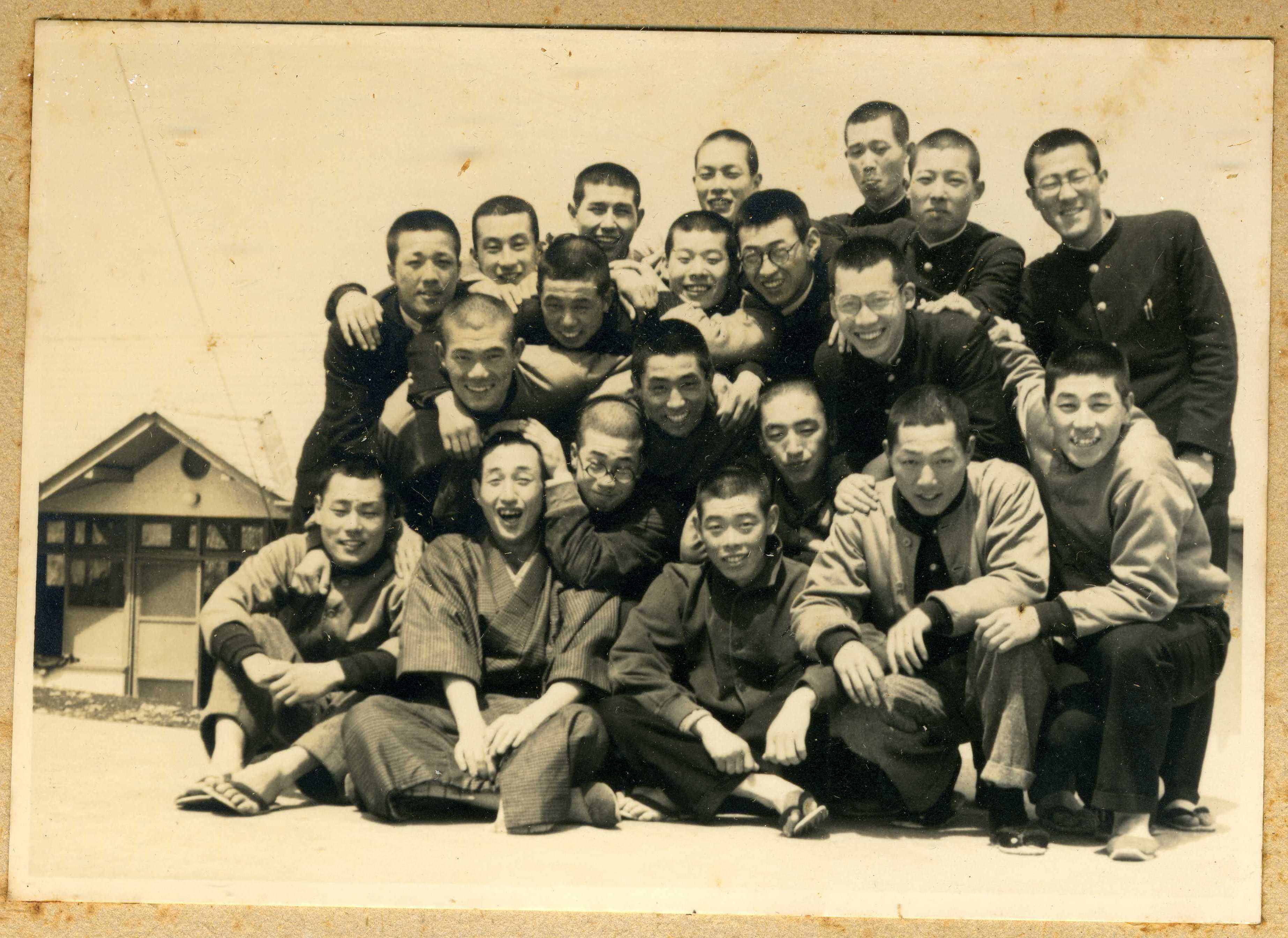 『最後の早慶戦』。試合前の記念撮影。後列右端が祖父、松尾俊治