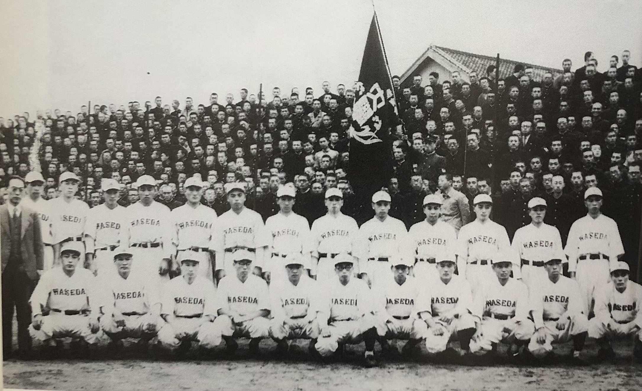 そして早慶の学生達が一緒になって「若き血」「都の西北」を涙を流しながら高らかに歌った。やがてどこからともなく沸きおこった「海ゆかば」のメロディー。スタンドの学生から学生へと広がり、スタンド全員の大合唱となって、早稲田の社にこだました。