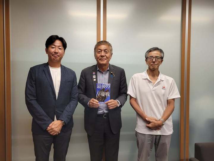 青島健太参議院議員にお会いしてきました。特別賛同者にも入って頂きました。青島健太さんは、慶應義塾大学野球部から東芝そしてヤクルトスワローズに進みご活躍されました。「慶應との縁は松尾さんのお陰です。高2の秋季関東大会での活躍を見た、当時、毎日新聞のアマチュア野球担当だった松尾さんが、慶應を受けてみないかと誘ってくれました」と祖父との出会いを語ってくれました。今回も親身に相談に乗って頂き有り難うございました。
