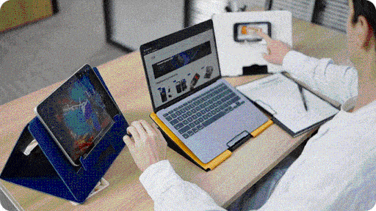 Workelfはバインダーと同じくらいスリムにデザインされており、ユニークな跳ね上げ式のデザインでマルチスタンドに変身します。 8種類のモードを備えており、シーンに応じて形を変えられます。