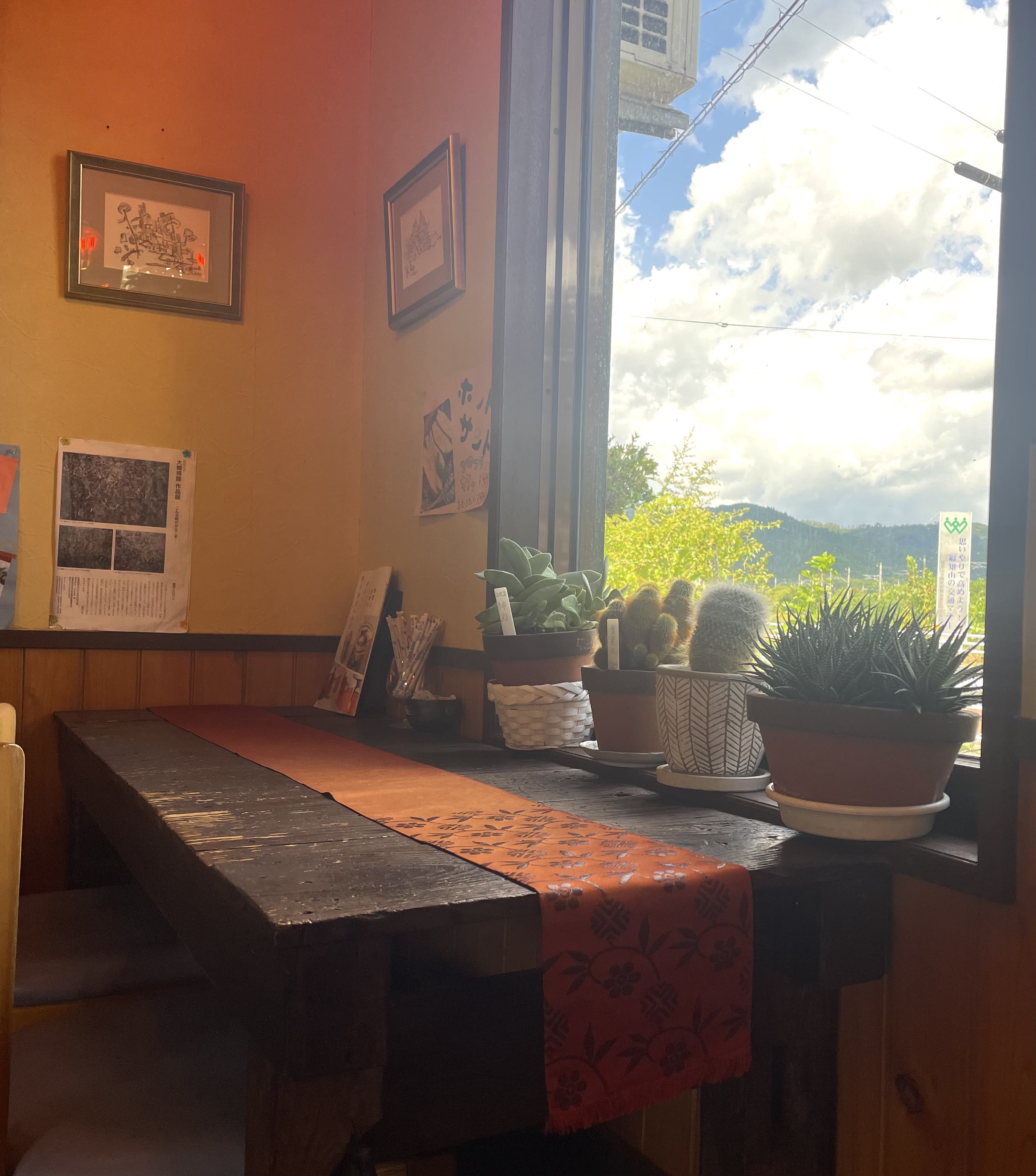席数はカウンター、テーブル合わせ25席程度。大江町のメイン通り国道175号線沿いにあり、駐車場は9台分。京都丹後鉄道「大江駅」から徒歩でのアクセスも可能な場所です。