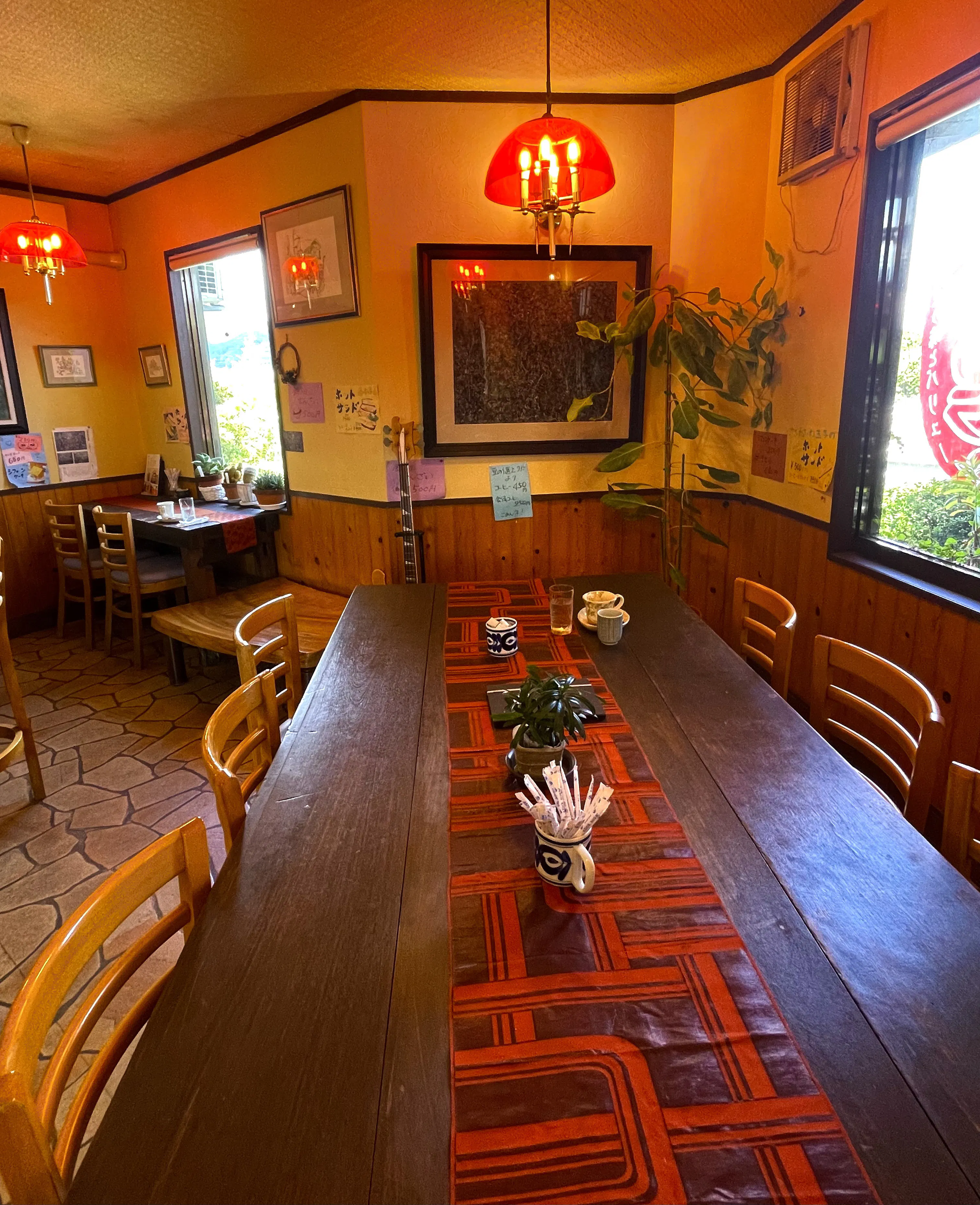 席数はカウンター、テーブル合わせ25席程度。大江町のメイン通り国道175号線沿いにあり、駐車場は9台分。京都丹後鉄道「大江駅」から徒歩でのアクセスも可能な場所です。