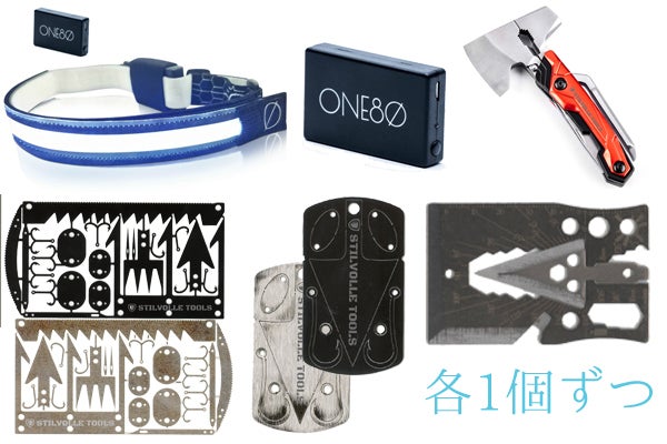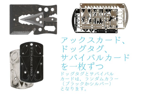 アックスカード24、サバイバルドッグタグ5、サバイバルカード12を一枚ずつ