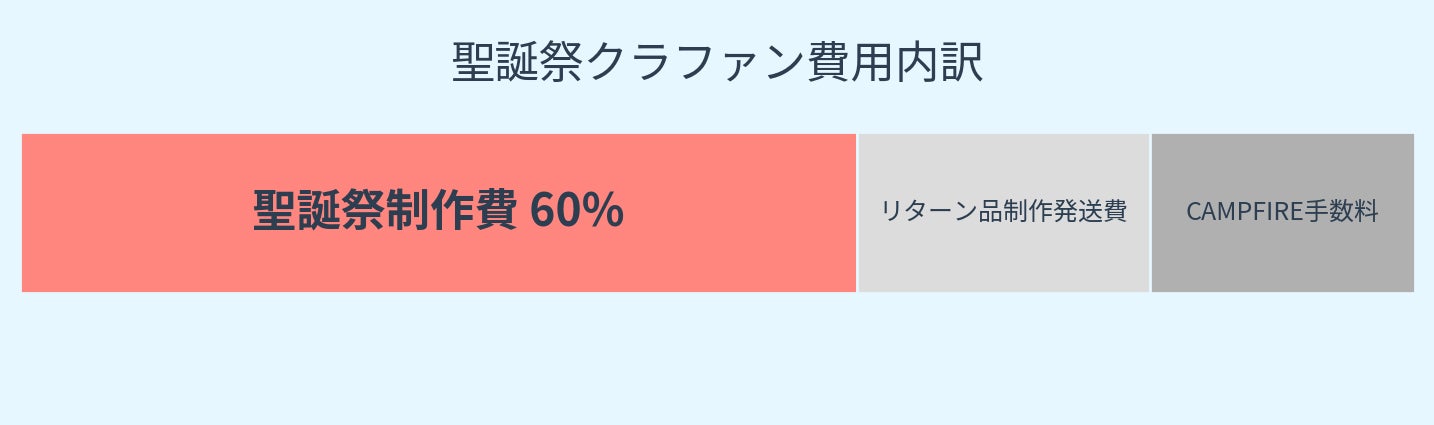 クラウドファンディングで集まった支援金は、支援金額からリターン制作発送費及び手数料を除いた約60%を聖誕祭制作費用に充てられます。