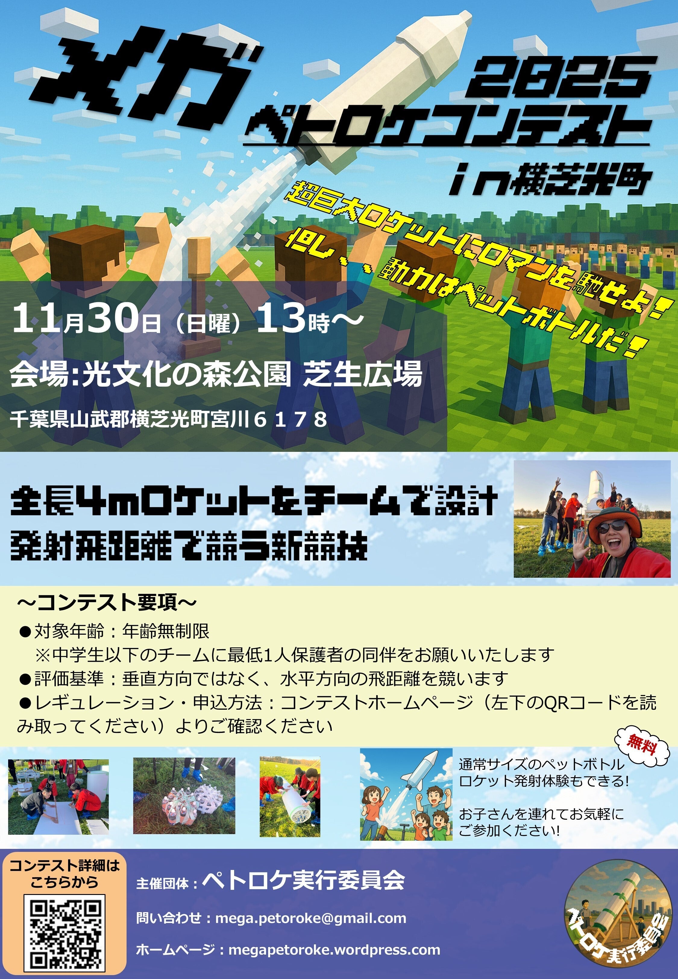 もちろん、11/30のメガ・ペトロケコンテスト本番の参加者もジャンジャン募集しています!一緒に4メートル級の巨大ロケットを作り上げ、空へ飛ばす体験を味わいましょう!