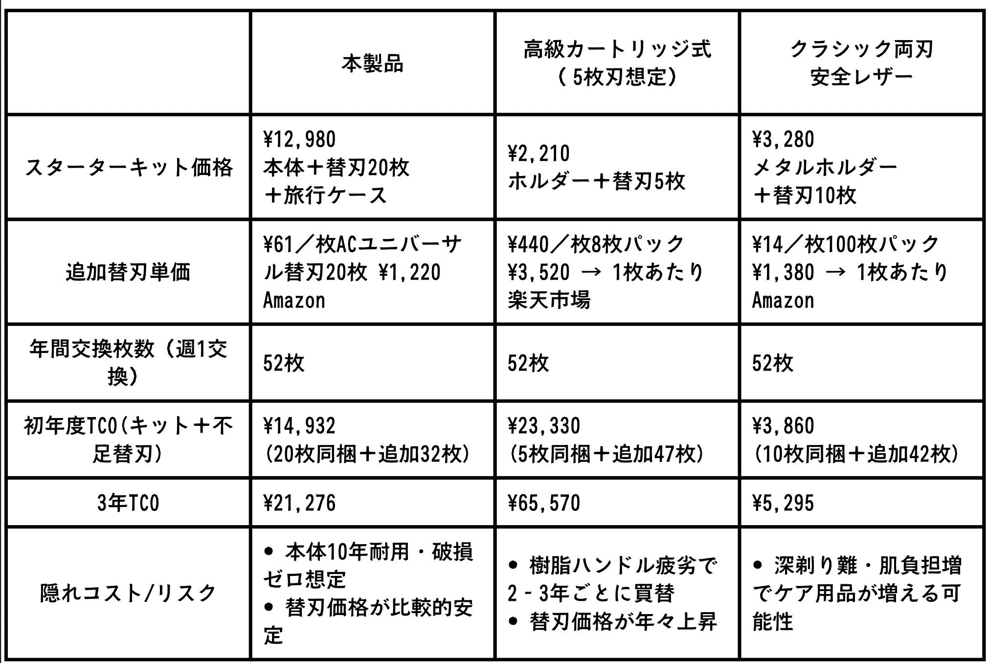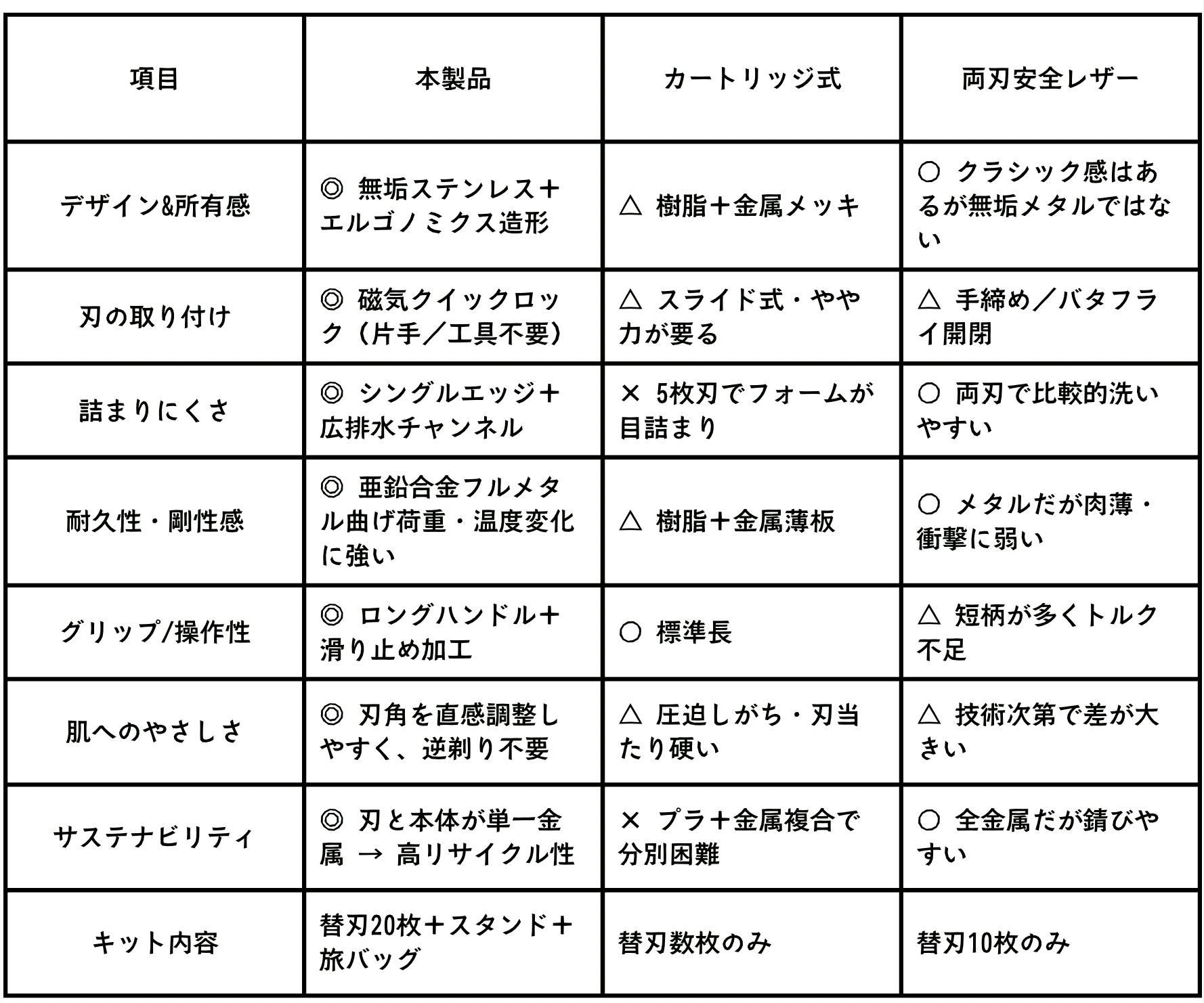 - ブレードタイプ:単一刃(シングルエッジ)