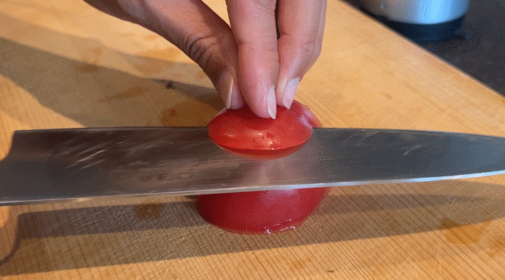 実際に研ぐ前と【Hiamea H1229】でトマトをスライスした様子がこちらです。