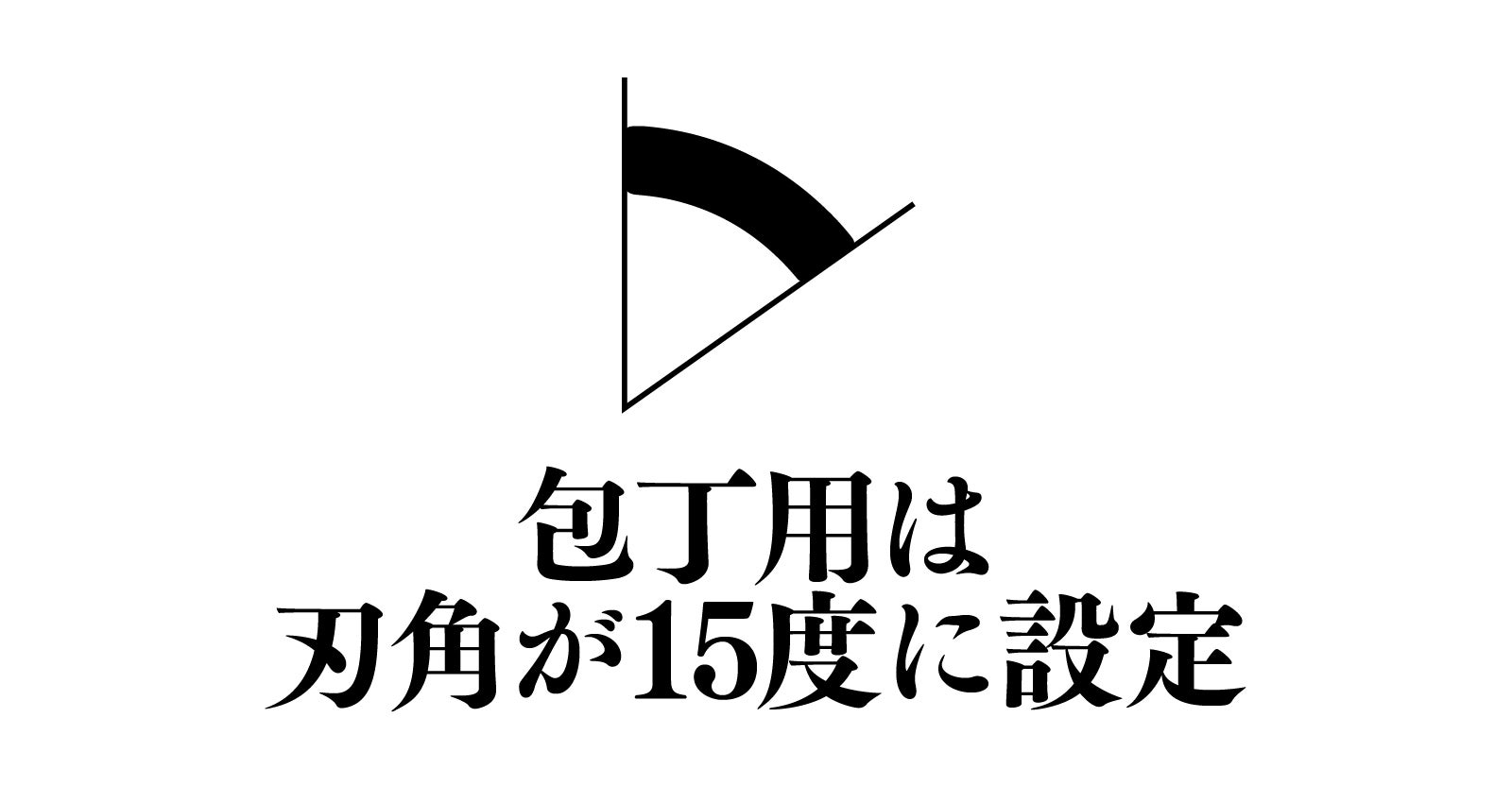 左右のスロットは包丁用で、刃角は切れ味と耐久性のバランスが取れる15度に設定されています。