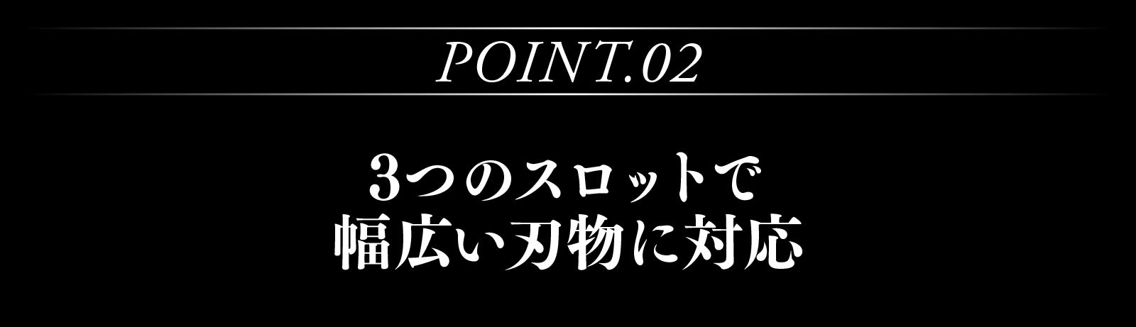 3種類のスロットで幅広い刃物に対応し、高速回転するセラミック砥石により力も不要でプロ並みの研ぎを実現します。