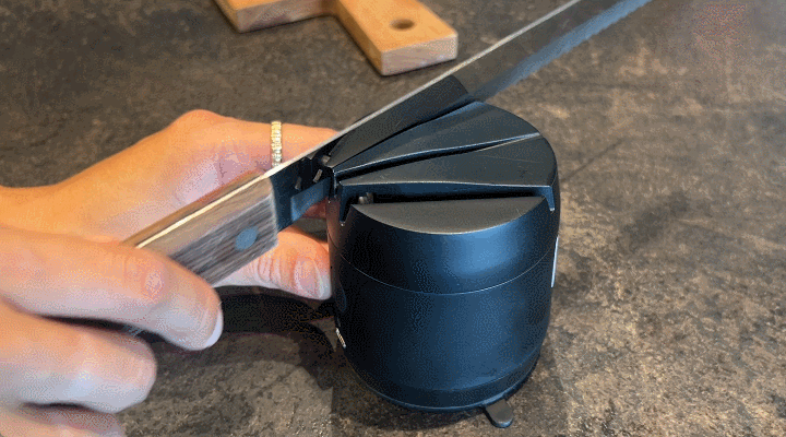 手でシャープナーを押さえつける必要がないので、研ぎ直しも片手で楽々。