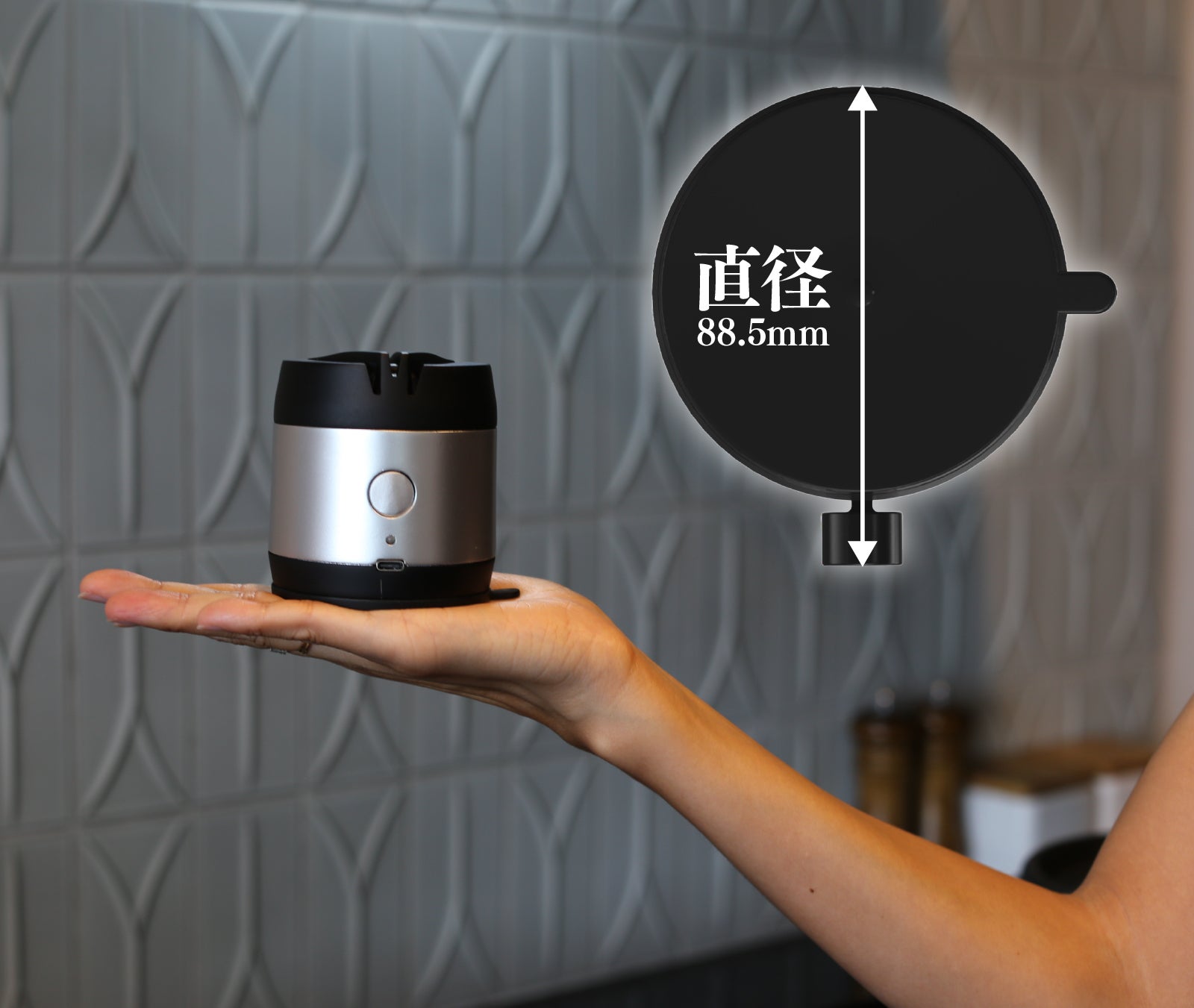 丸くて手に馴染む、汚れに強く掃除しやすい外装。完全ワイヤレス、コンパクトながら長持ちの“エナジーコア”(リチウム電池)は、日常使いやアウトドアの研ぎに十分対応。