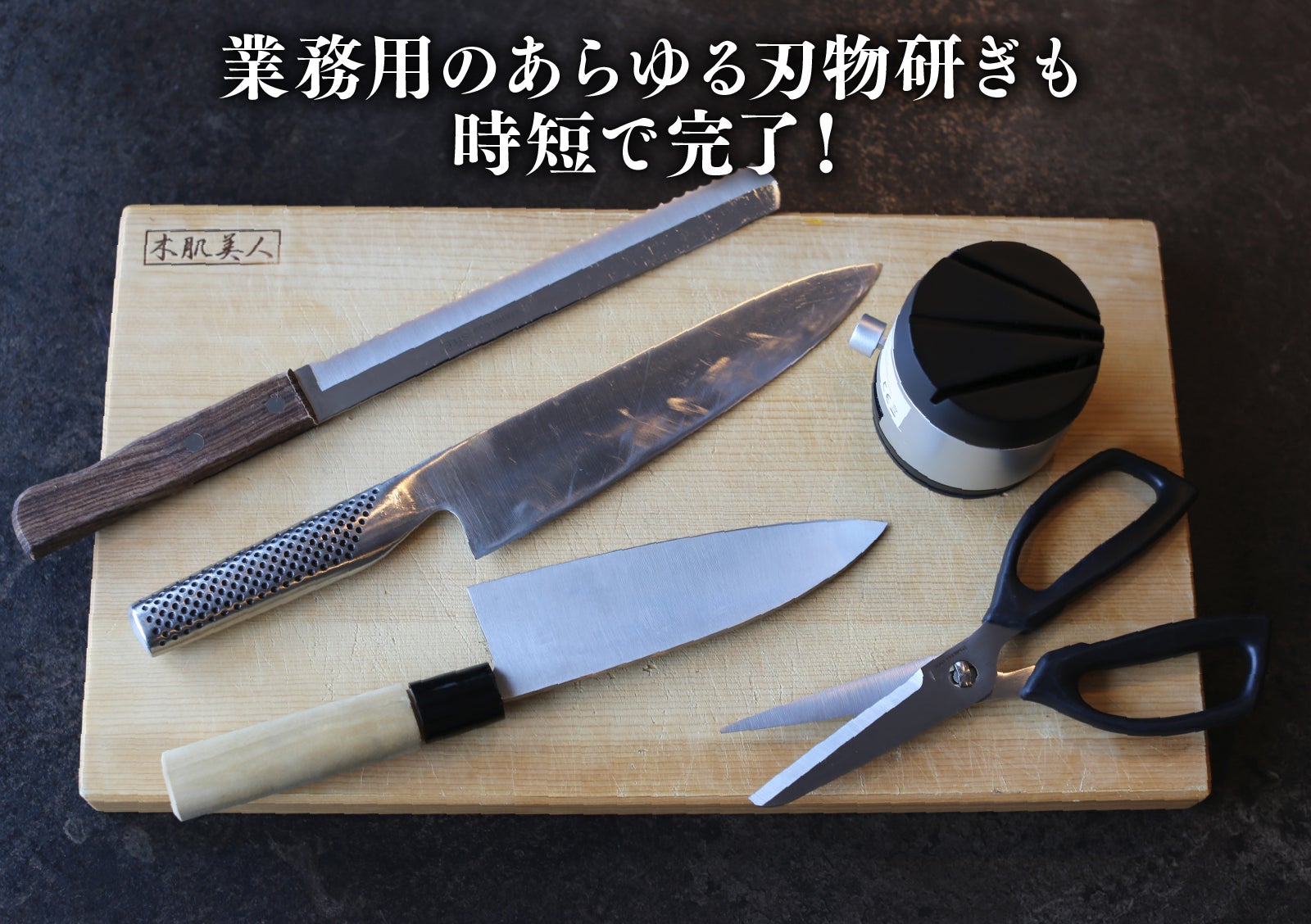 パン切りナイフやハサミにも対応したプロ級の技で、刃物が秒で蘇ります。