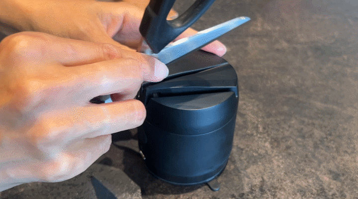 【Hiamea H1229】はスロットに刃物を通すだけで、鈍った刃物の切れ味を劇的に復活できます。その間、わずか3秒ほど!