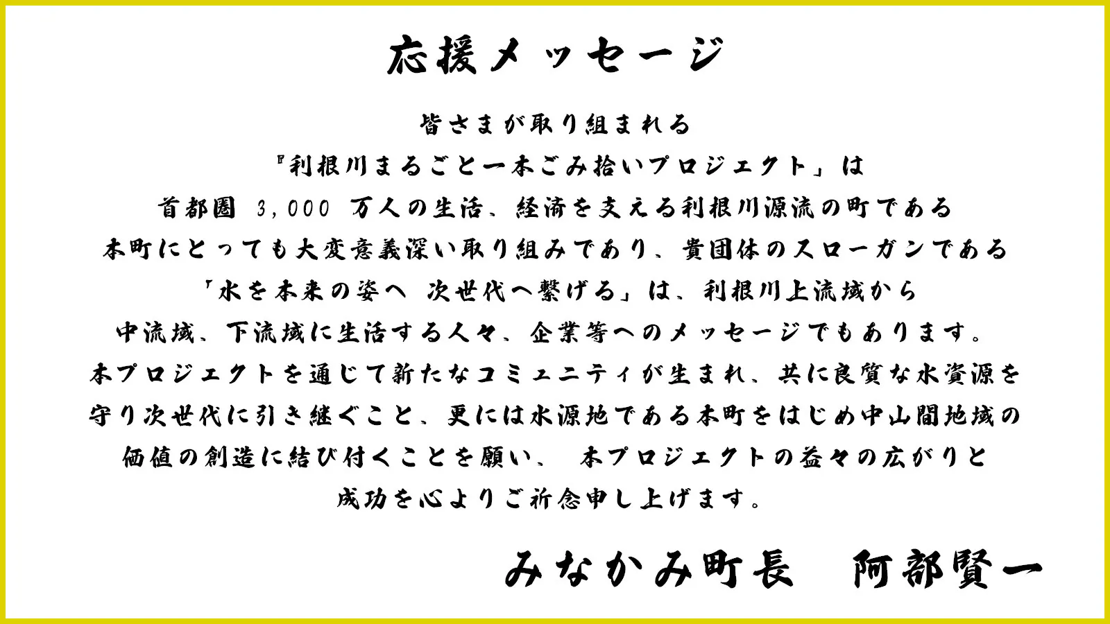 やがて全国へ「〇〇川まるごと一本ごみ拾いプロジェクト」が波及し、日本が世界で一番美しい水を保有する国へと変貌させることが私たちの最終目標です。